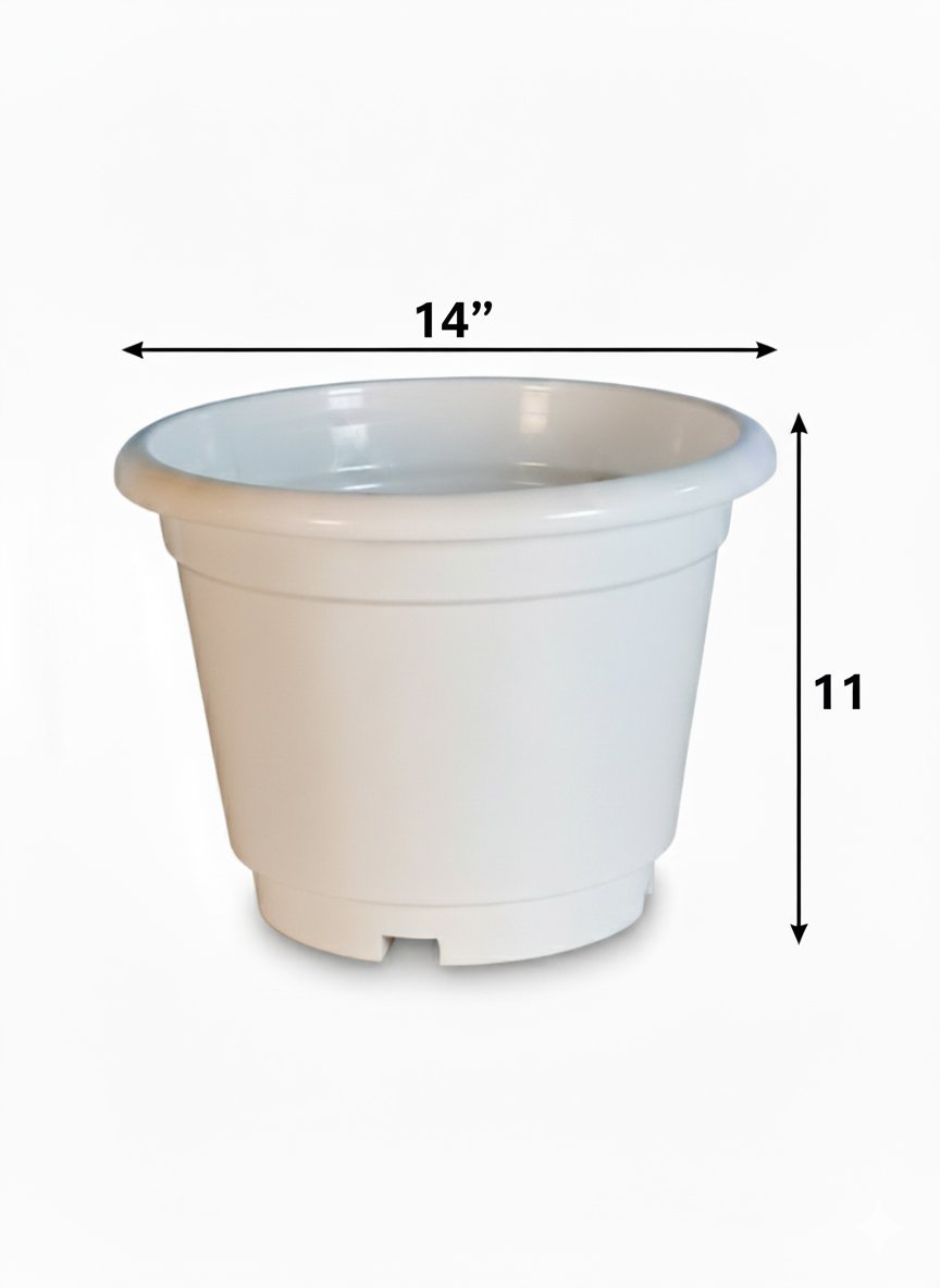 The C Pot is a classic, lightweight plastic plant pot designed for everyday use. With its tapered shape and smooth white finish, it provides a clean and modern look that complements any setting—indoors or outdoors. The wide rim ensures easy handling, while the built-in drainage holes at the base promote healthy root growth by preventing excess water buildup.